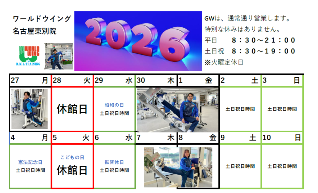 当施設のゴールデンウィーク営業時間は画像の通りです。